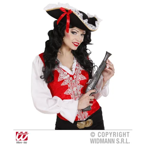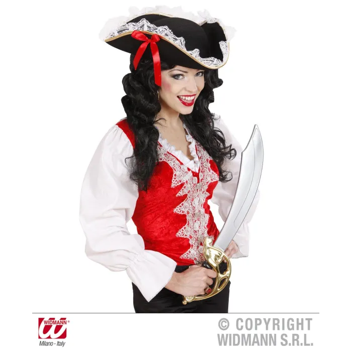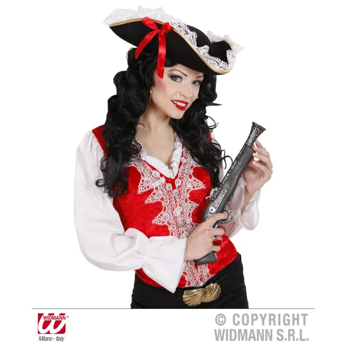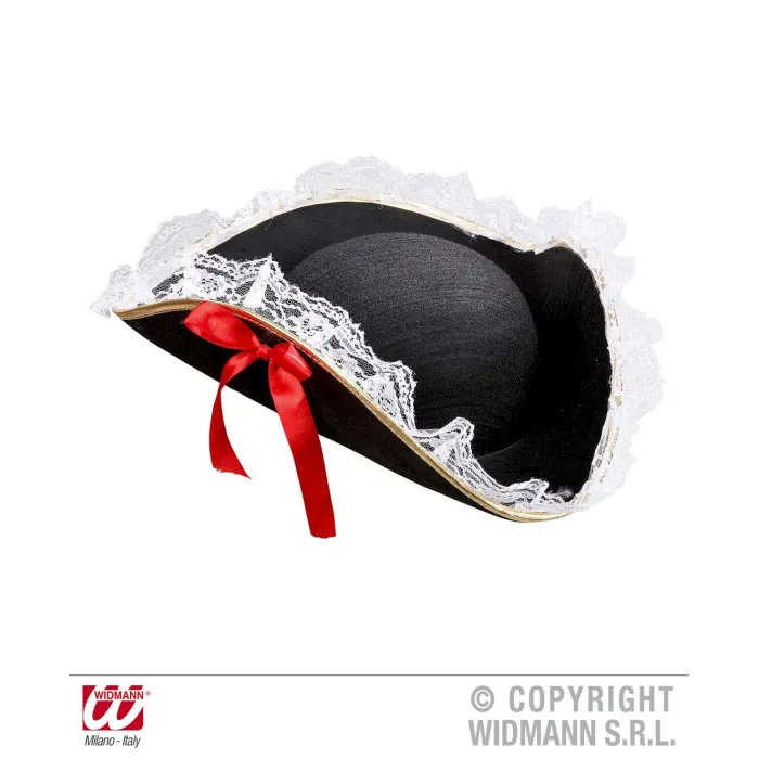 Tricorne avec bordure dentelle et noeud rouge pour adultes