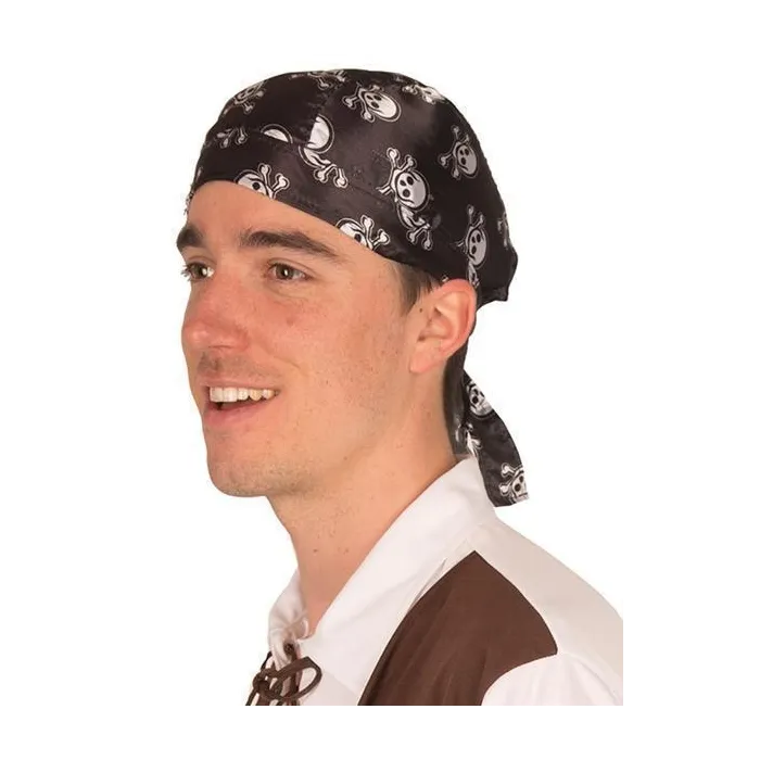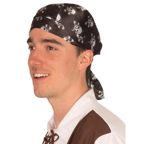 Bandana pirate de couleur noir avec des têtes de morts blanches