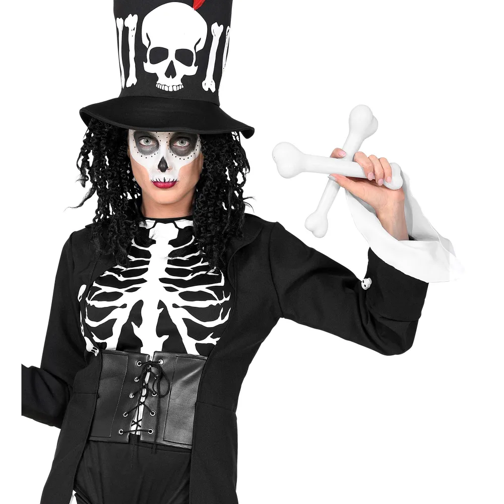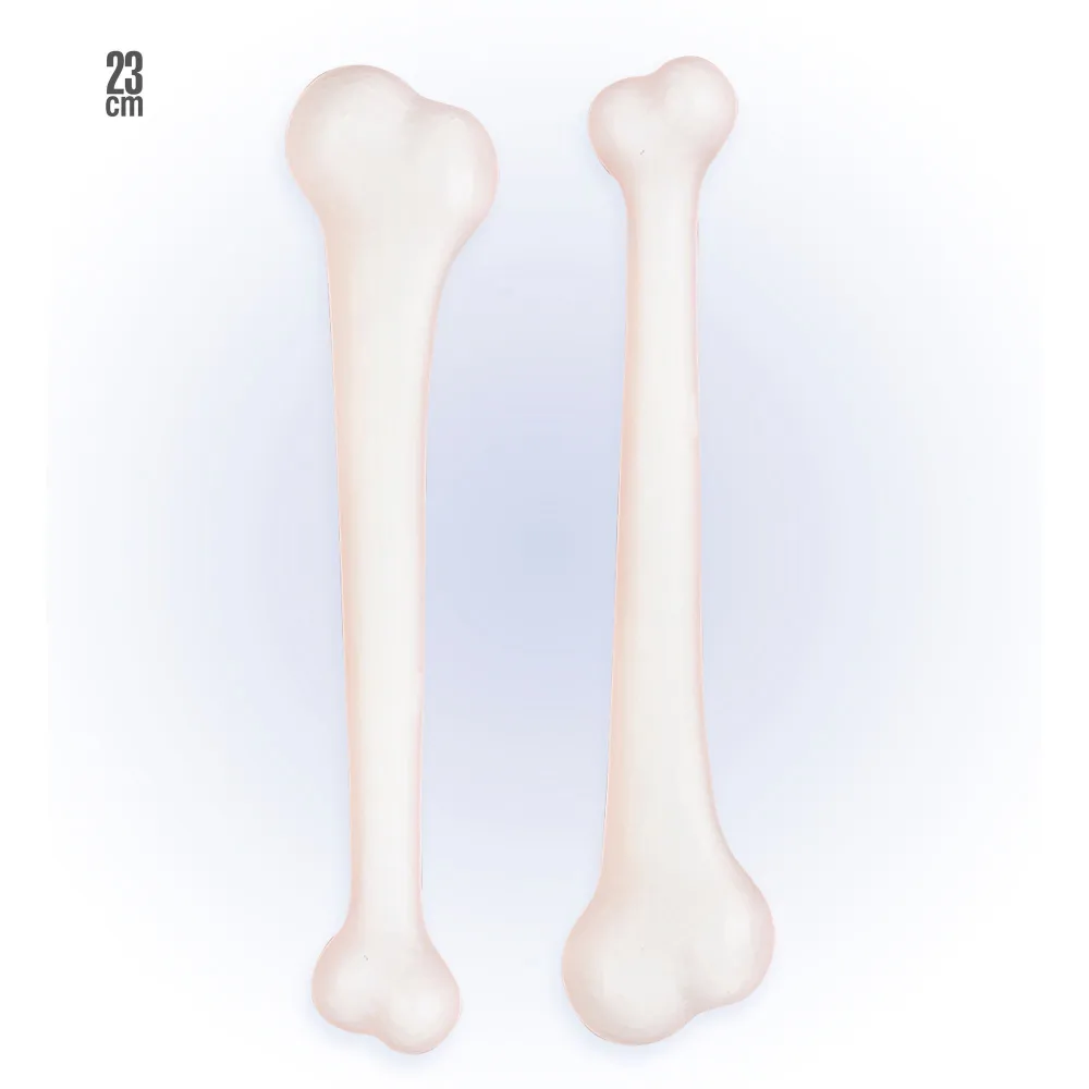Set de deux os blanc de 23cm pour un costume d'homme ou femme préhistorique de Cro-Magnon.