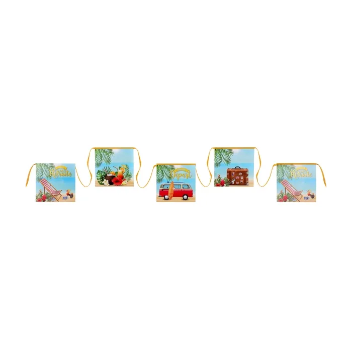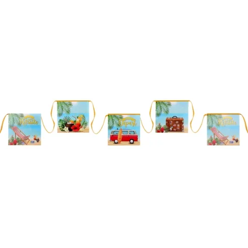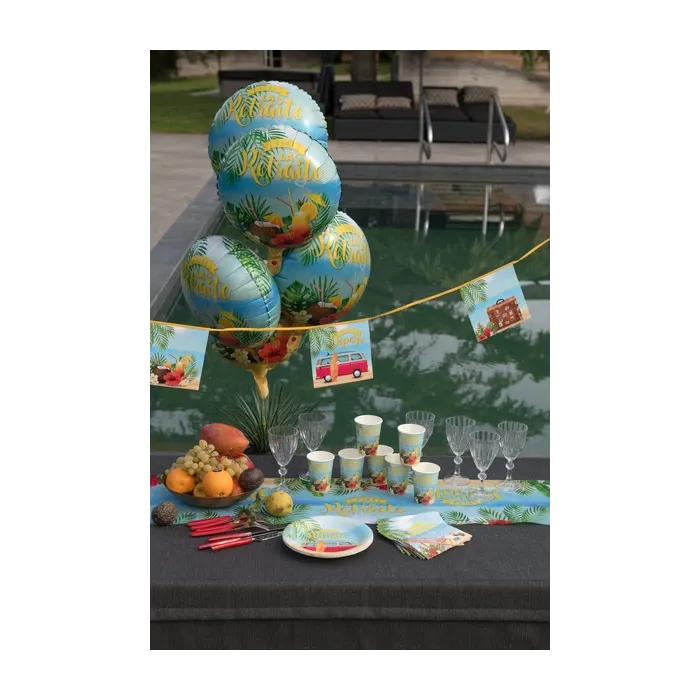 Cette guirlande fanions "Joyeuse retraite" est une décoration originale pour une fête de départ à la retraite. Cette guirlande en lettres de couleur dorée se compose de 10 fanions au motifs tropicaux comportant la mention "Joyeuse Retraite" réunis par un fil d'attache. Faites de cet évènement un moment inoubliable avec cette guirlande de fête de 3 mètres...