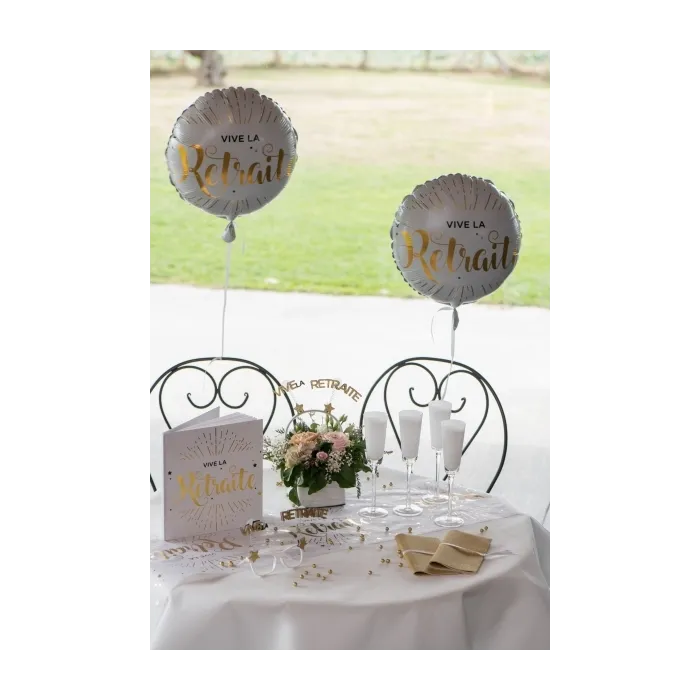 Ce centre de table est une décoration originale pour la présentation de votre table de fête de départ à la retraite. Cette décoration de table haute en couleur saura attirer l'attention et ajouter la touche de fantaisie à votre tablée pour en mettre plein la vue à vos convives. Cet accessoire de décoration verte et dorée se compose d'une base en cercle...