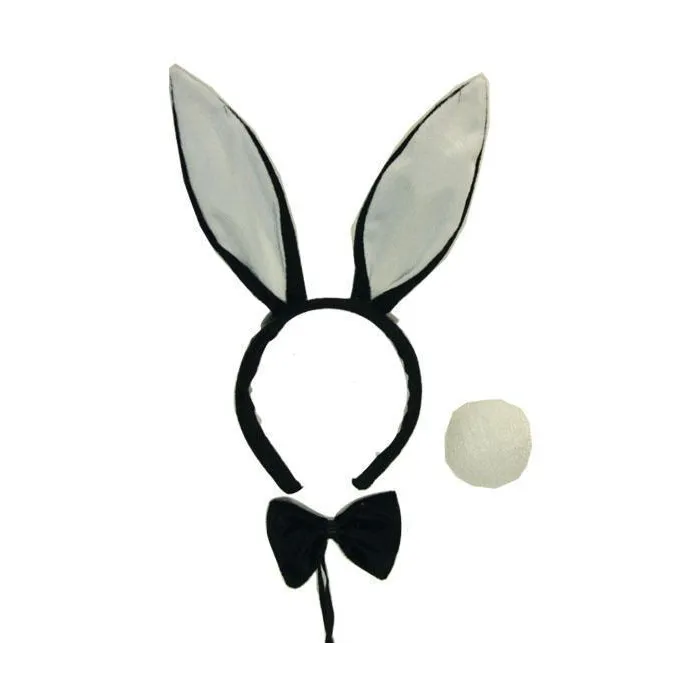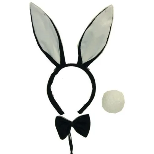 Set de lapin de couleur rose comprenant:Serre tête Queue qui se fixe avec une épingle à nourrice Noeud papillon Serre tête qui peut convenir aux adultes et aux enfants