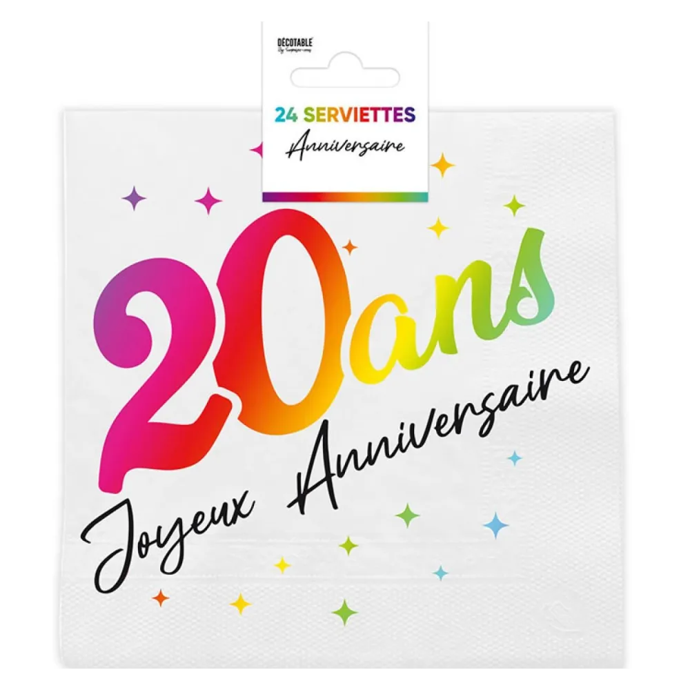24 serviettes 20 ans multicolore