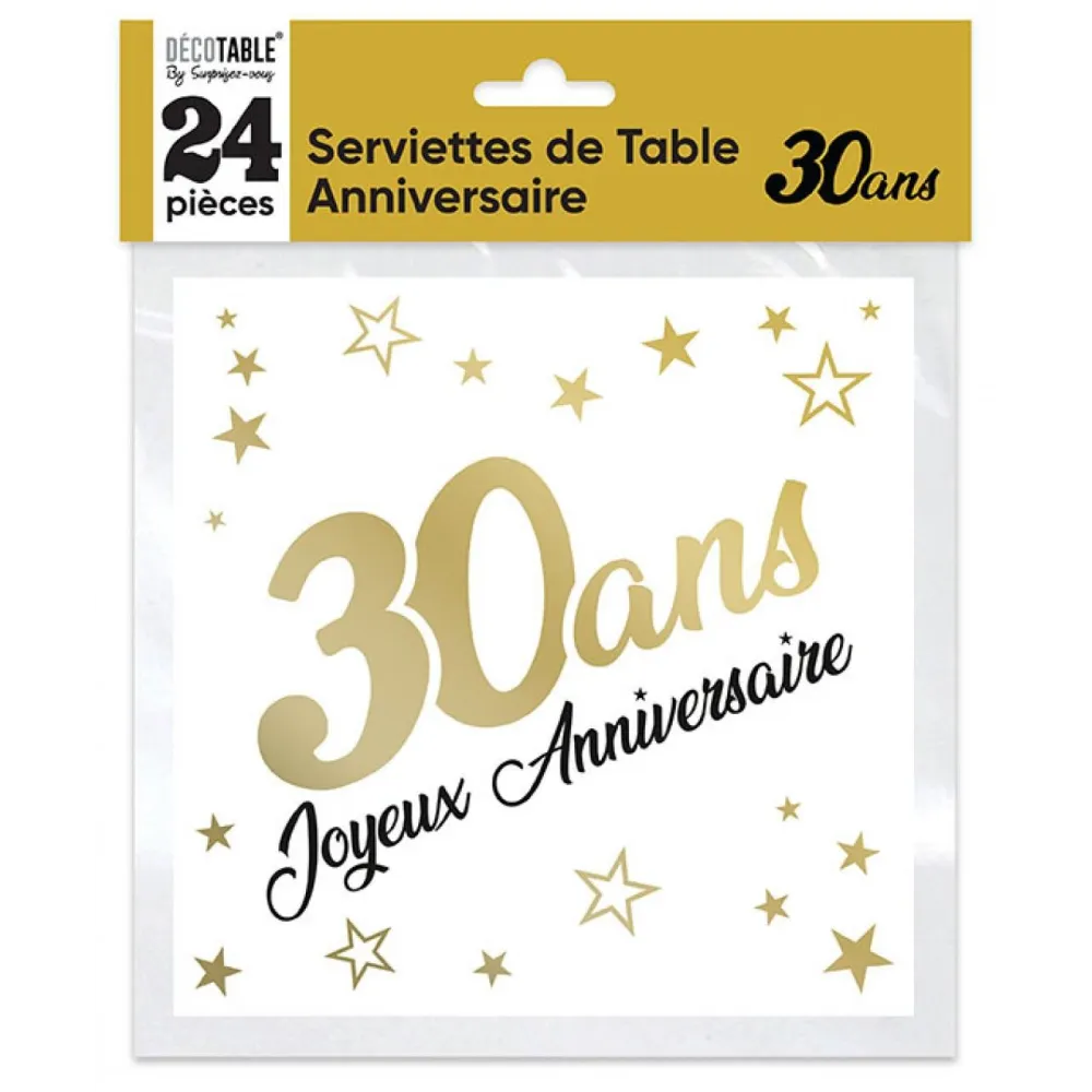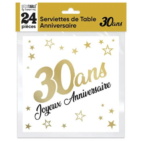 Serviettes âge noir et blanc - 30 ans
