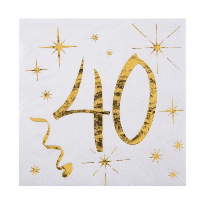 Serviettes joyeux anniversaire métallisé Matière: Papier 3 plis Dimensions: 16.5 x 16.5 cm (plié) / 33 x 33cm (déplié) Quantité: 24