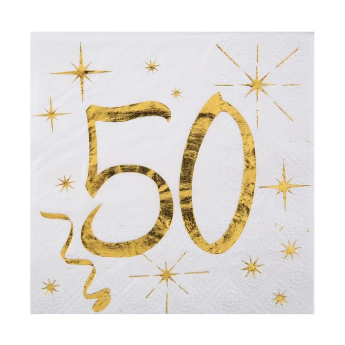 Serviettes joyeux anniversaire métallisé - SaugeMatière: Papier 3 plis Dimensions: 12.5 x 12.5 cm / 25 x 25 cm Quantité: 20