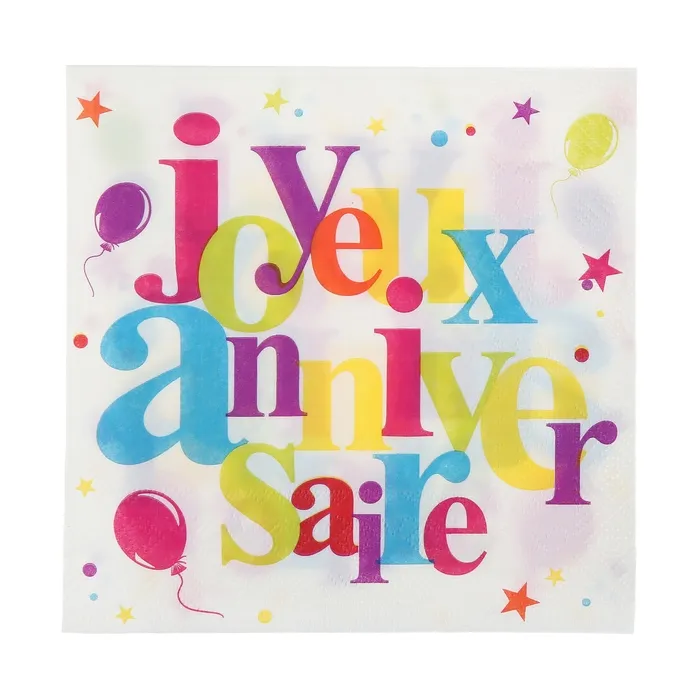 20 serviettes joyeux anniversaire - Festif multicolore