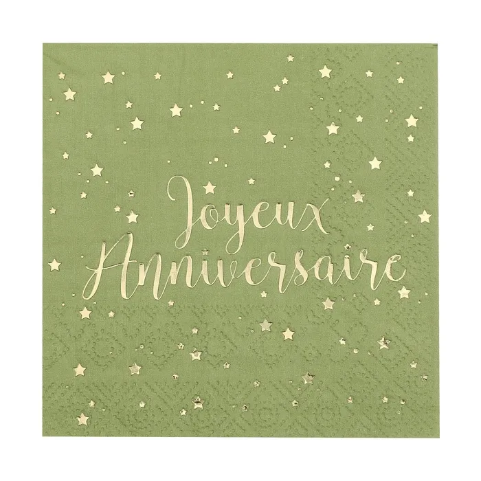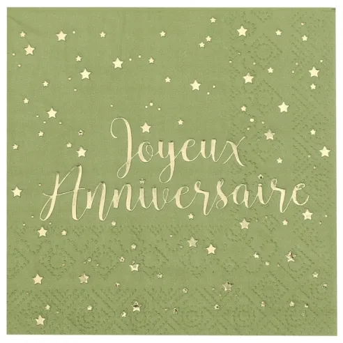 Serviettes joyeux anniversaire métallisé - Sauge