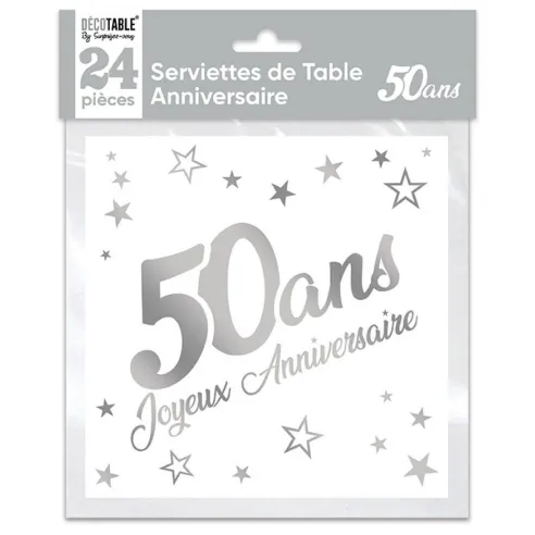 24 serviettes Anniversaire métallisé argent - 50 ans