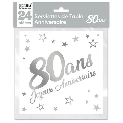 24 serviettes Anniversaire métallisé argent - 80 ans