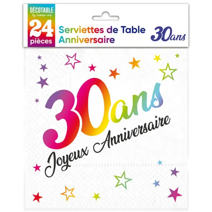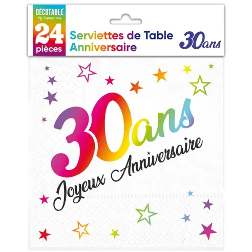 24 serviettes Anniversaire métallisé multi - 30 ans