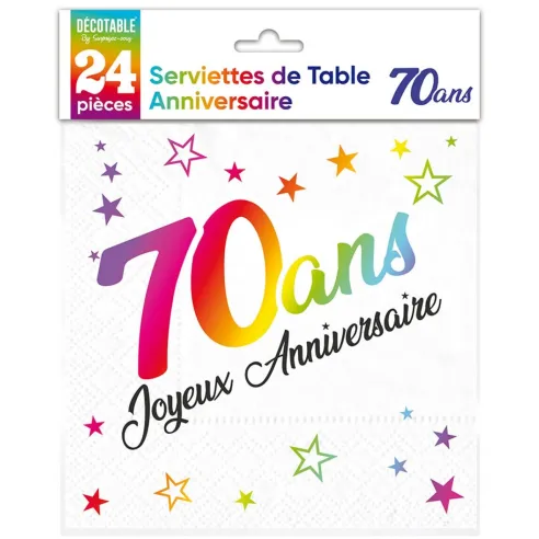 24 serviettes Anniversaire métallisé multi - 70 ans