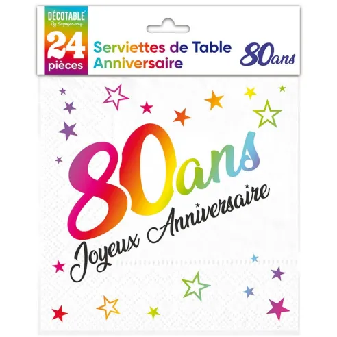 24 serviettes Anniversaire métallisé multi - 80 ans