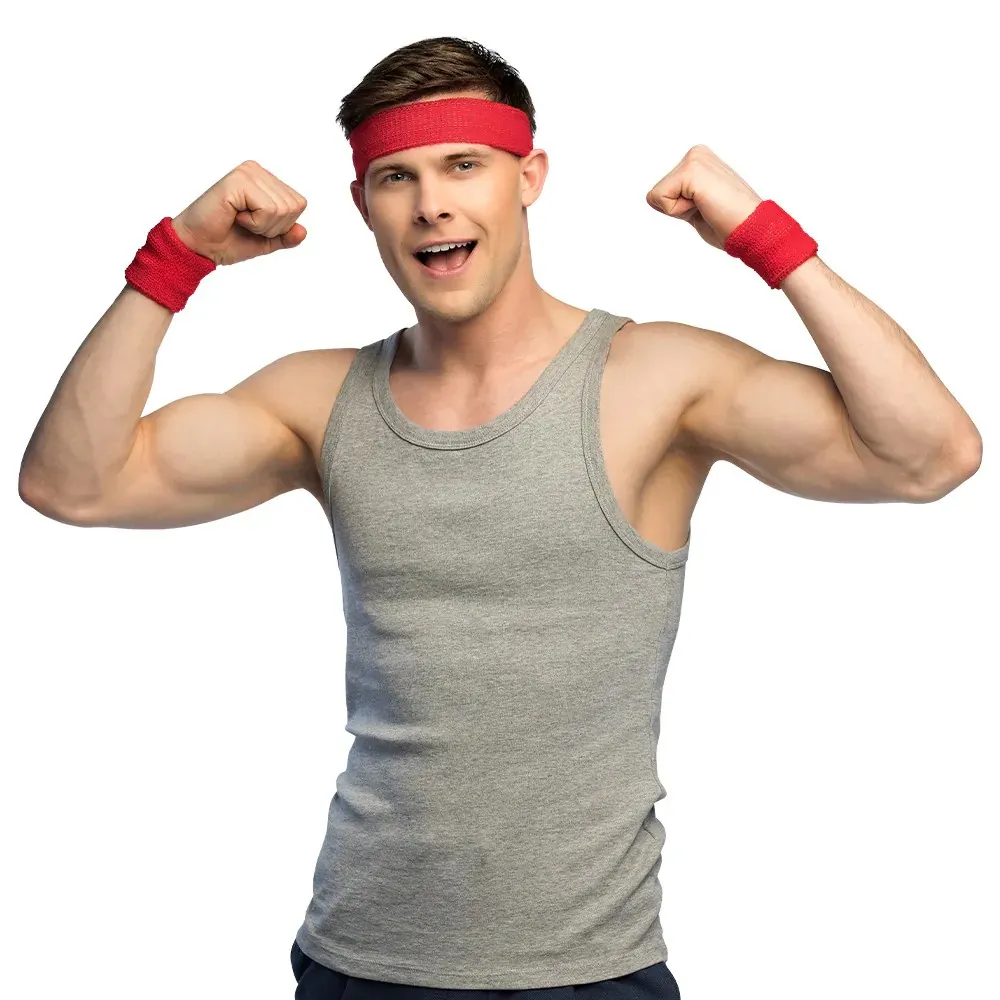 Tout le monde peut se déchaîner sur la piste de danse, car avec ce set coloré de bandeaux de transpiration de couleur rouge, la transpiration n'est plus un problème. L'ensemble se compose de 3 bandeaux : 2 brassards et 1 bandeau. Les couleurs accrocheuses font de ces bandeaux un complément amusant à un costume sportif, à une tenue rétro des années 90 pour le carnaval ou à une fête sur le thème de l'école ancienne.