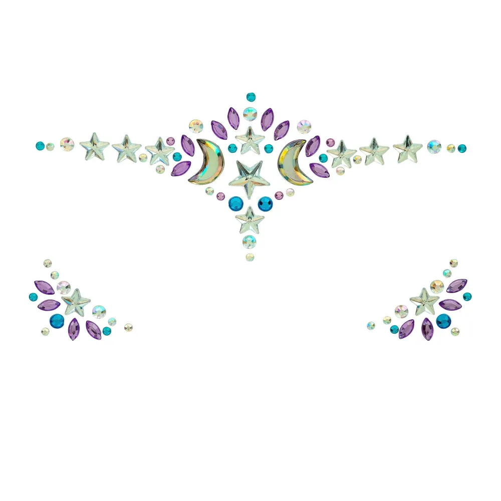 Strass maquillage brillants pour visage thème sorcière, composé de petits diamants de formes variées, scintillants et autocollants à appliquer sur le visage en quelques instants. Un maquillage parfait réalisé facilement pour se rendre à un carnaval ou festival.