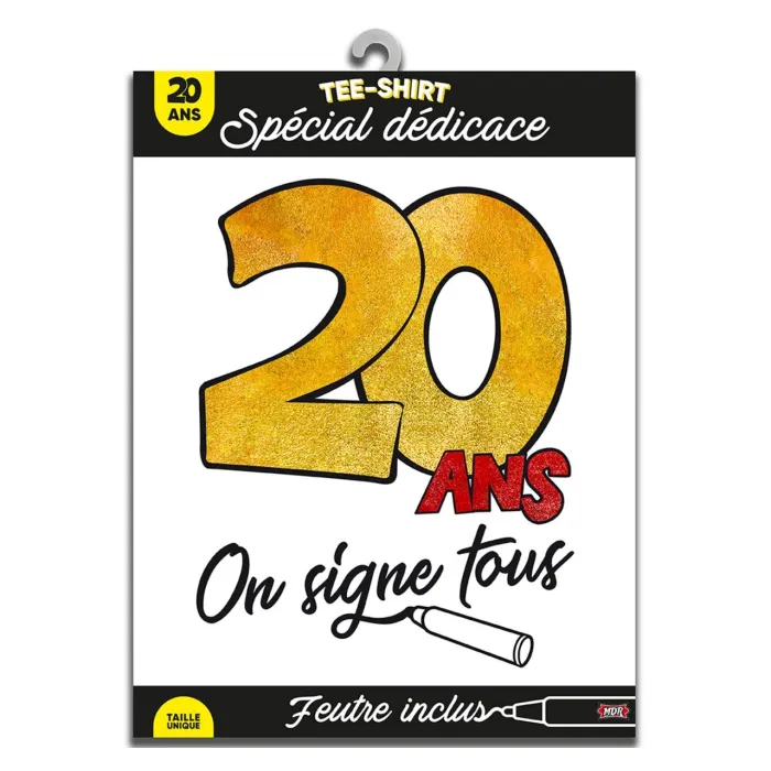 Voici un cadeau d'anniversaire original et personnalisable. Ce tee-shirt décliné à l'âge spécial dédicace est accompagné d'un feutre textile qui vous permettra de marquer votre affection par un petit mot ou un dessin, à votre convenance. Alors sortez votre plus belle plume ! Taille unique
