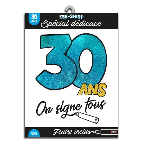 Voici un cadeau d'anniversaire original et personnalisable. Ce tee-shirt décliné à l'âge spécial dédicace est accompagné d'un feutre textile qui vous permettra de marquer votre affection par un petit mot ou un dessin, à votre convenance.  Alors sortez votre plus belle plume ! Taille unique
