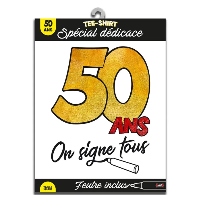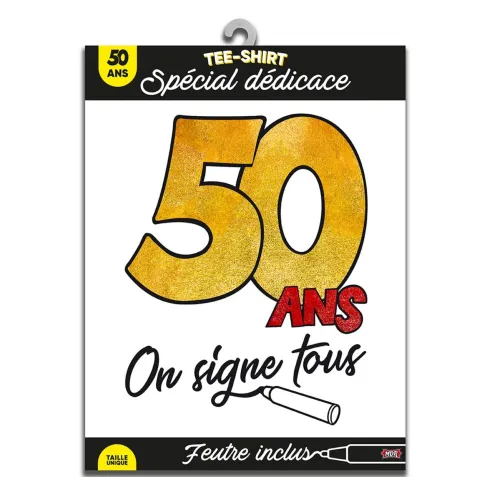Voici un cadeau d'anniversaire original et personnalisable. Ce tee-shirt décliné à l'âge spécial dédicace est accompagné d'un feutre textile qui vous permettra de marquer votre affection par un petit mot ou un dessin, à votre convenance.  Alors sortez votre plus belle plume ! Taille unique