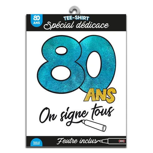 Voici un cadeau d'anniversaire original et personnalisable. Ce tee-shirt décliné à l'âge spécial dédicace est accompagné d'un feutre textile qui vous permettra de marquer votre affection par un petit mot ou un dessin, à votre convenance.  Alors sortez votre plus belle plume ! Taille unique