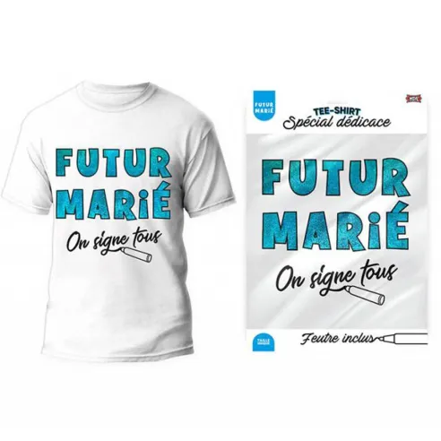 Un ami enterre sa vie de célibataire ? Offrez un souvenir original et personnalisé. Ce tee-shirt "enterrement de vie de garçon" spécial dédicace accompagné d'un feutre textile est un cadeau humoristique qui permettra de garder un souvenir de cette journée pas comme les autres. Alors sortez vos plus belles plumes !