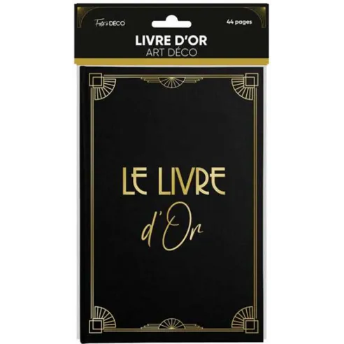Livre d'or thème Art Déco avec une quarantaine de pages vierges et une couverture noire et dorée. Pour donner un style rétro à votre événement et laisser un petit message souvenir lors d'un anniversaire ou départ en retraite.