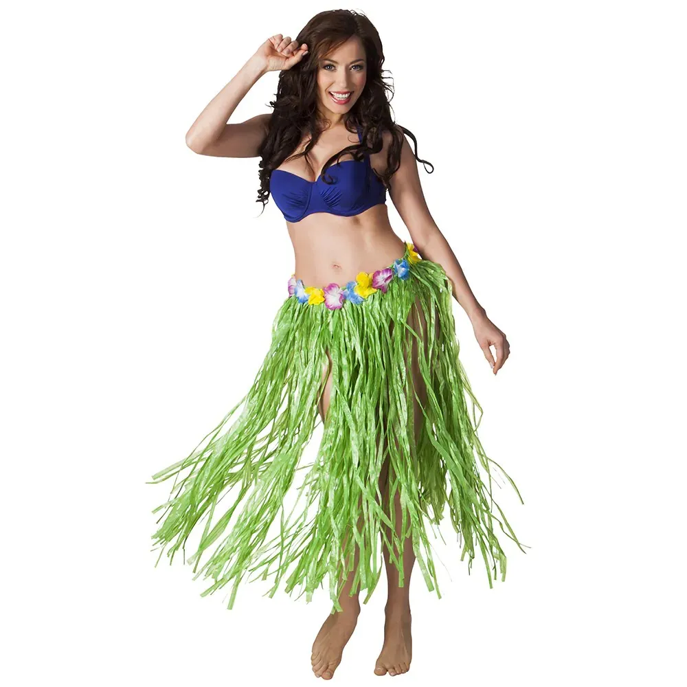 Mettez-vous dans l'ambiance tropicale avec cette jolie jupe longue hawaïenne (80 cm). La jupe hawaïenne a une belle couleur neutre et est décorée en haut avec des fleurs colorées pour compléter le look estival. La touche finale pour un costume de hula joyeux pour le carnaval ou une tenue d'été pour une fête de plage, une fête de jardin, une fête tiki ou une fête sur le thème d'Hawaï.