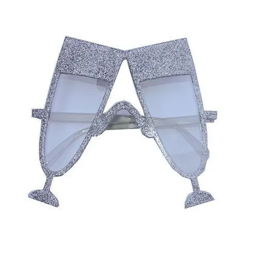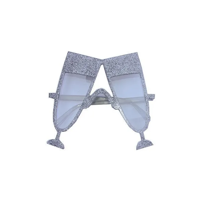 Lunettes fantaisie pailletées en forme de coupes de champagne pour adultes.