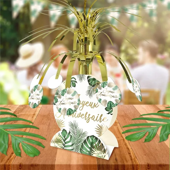 Ce centre de table anniversaire Tropical est idéal pour décorer sa table d'anniversaire avec élégance.