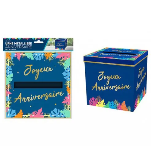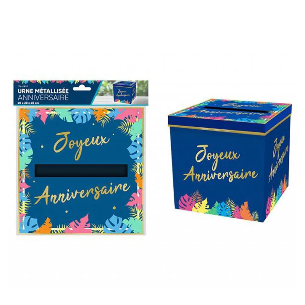 Urne Joyeux Anniversaire thème tropical pour petits cadeaux