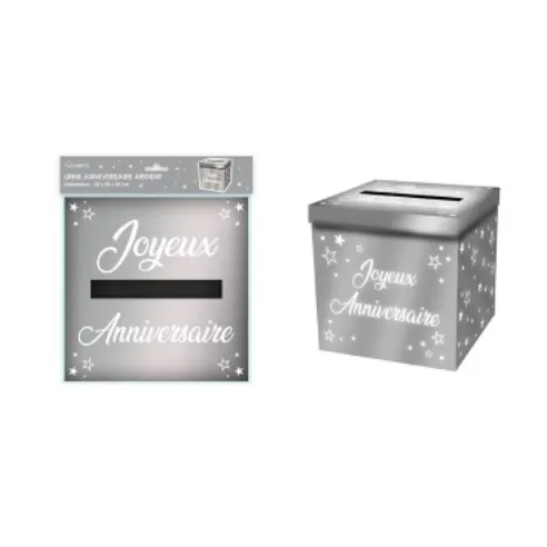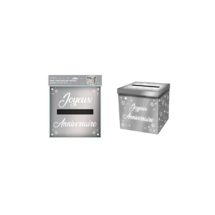 Cette urne cartonnée spécial «Joyeux anniversaire » permettra de recevoir les petits mots et enveloppes des invités.