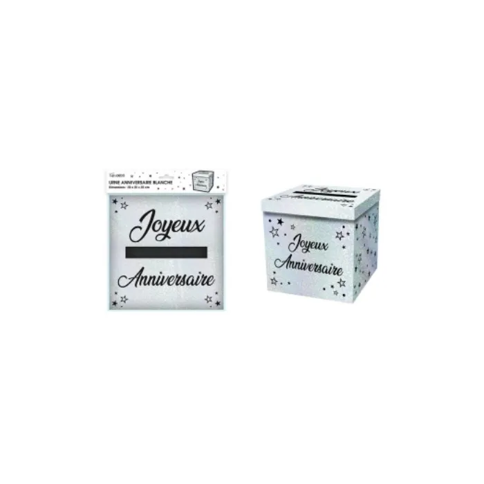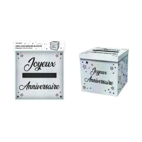 Cette urne cartonnée spécial «Joyeux anniversaire » permettra de recevoir les petits mots et enveloppes des invités.