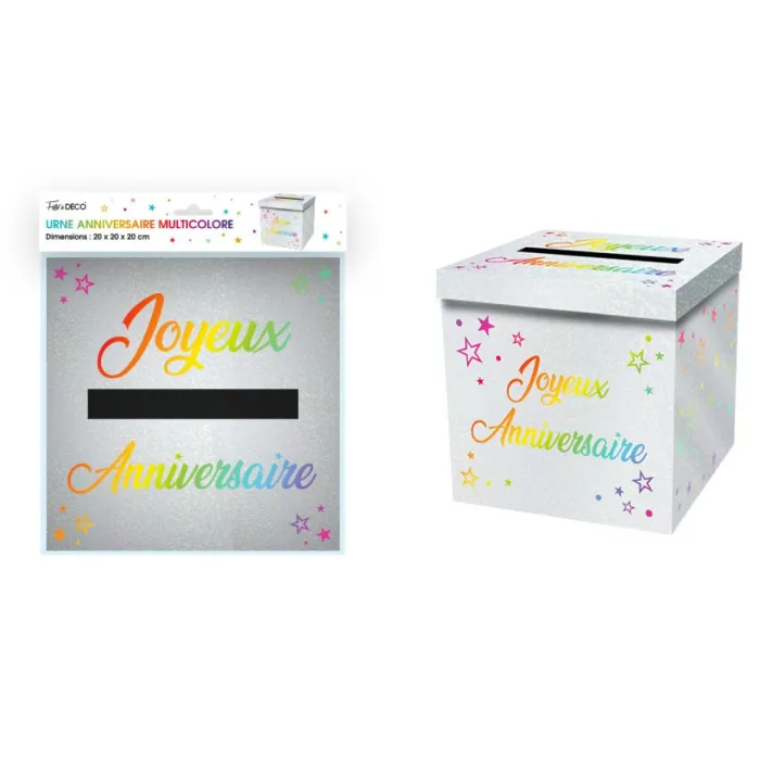 Cette urne cartonnée spécial «Joyeux anniversaire » permettra de recevoir les petits mots et enveloppes des invités.