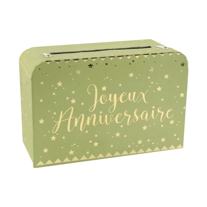 Cette urne cartonnée spécial «Joyeux anniversaire » permettra de recevoir les petits mots et enveloppes des invités. Il ne reste plus qu’à la remplir ! Le couvercle est déjà monté, vous n’aurez plus qu’à déplier la boîte en toute simplicité. Dimensions : 20 x 20 x 20 cm Taille de la fente: 15 x 2cm